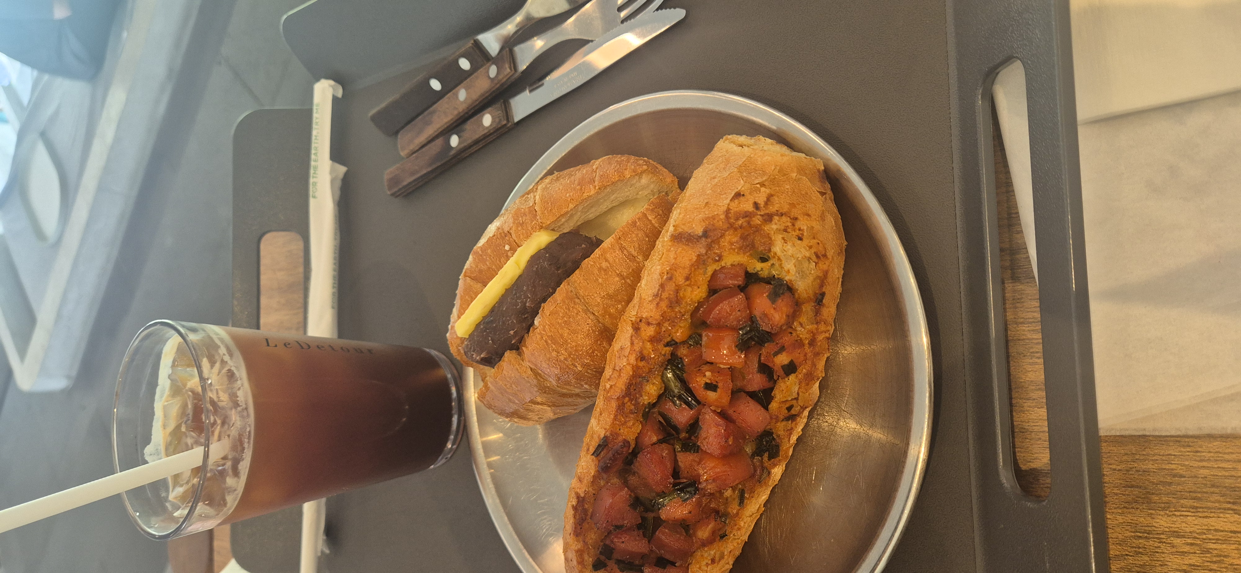 디저트로 방문한 카페에서 주문한 달콤한 앙버터 들어간 빵과 아이스아메리카노가 더 맛있었어요 ㅎㅎ
