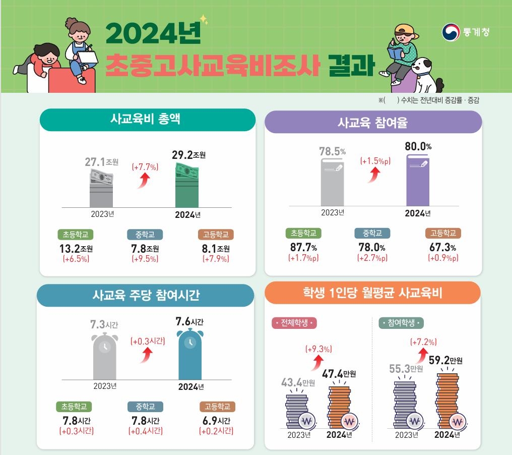학생수 줄었는데 2조 더 썼다…작년 사교육비 29조2천억 '역대최고'